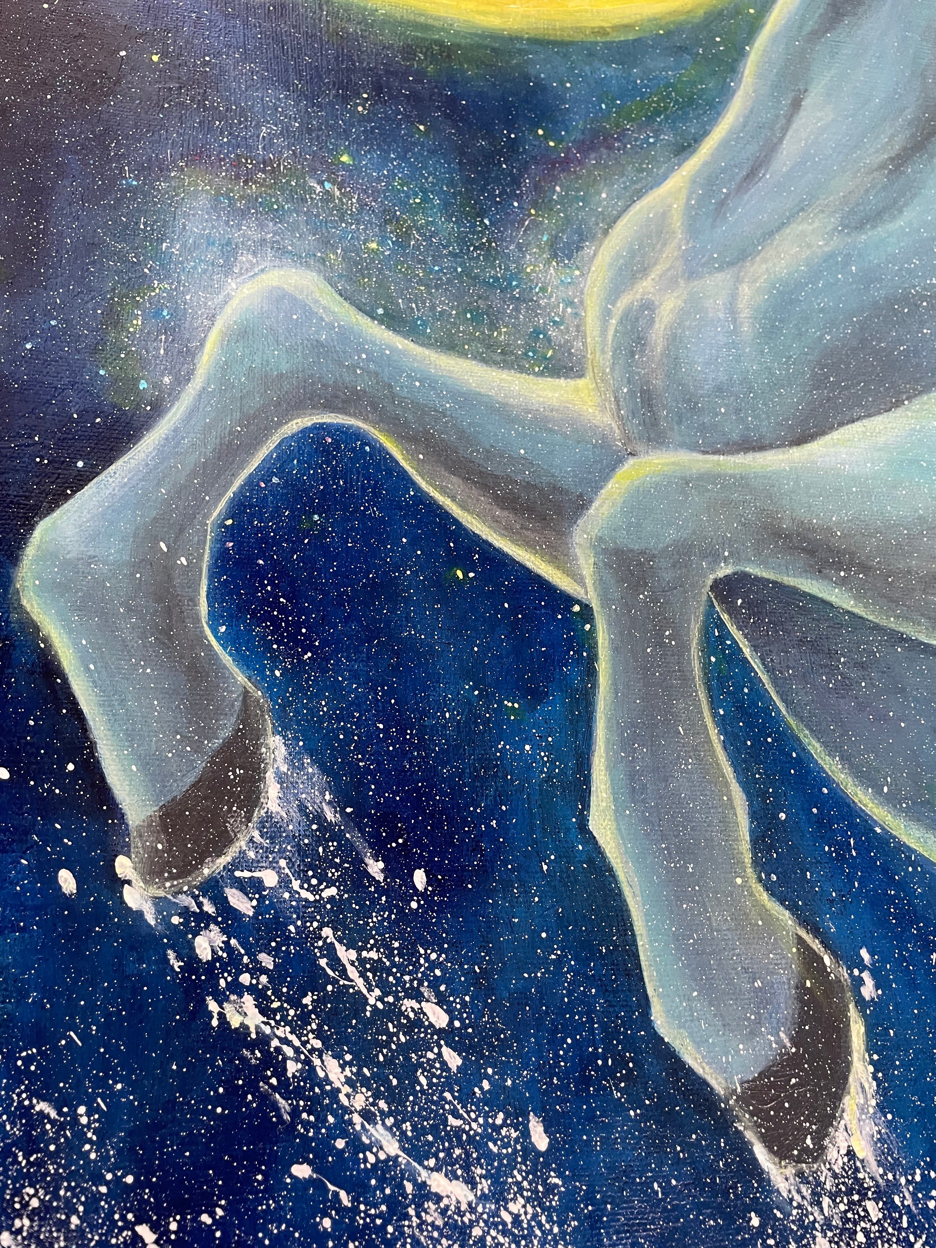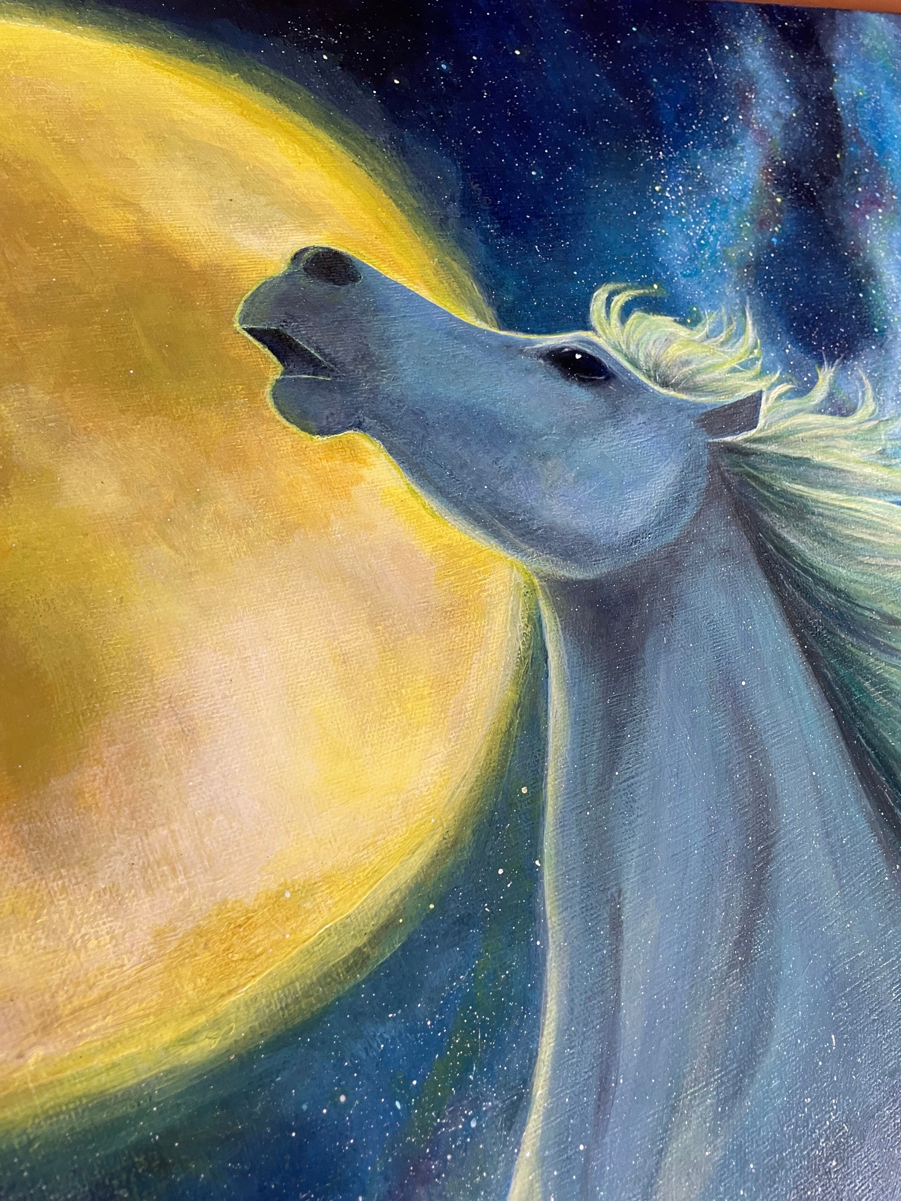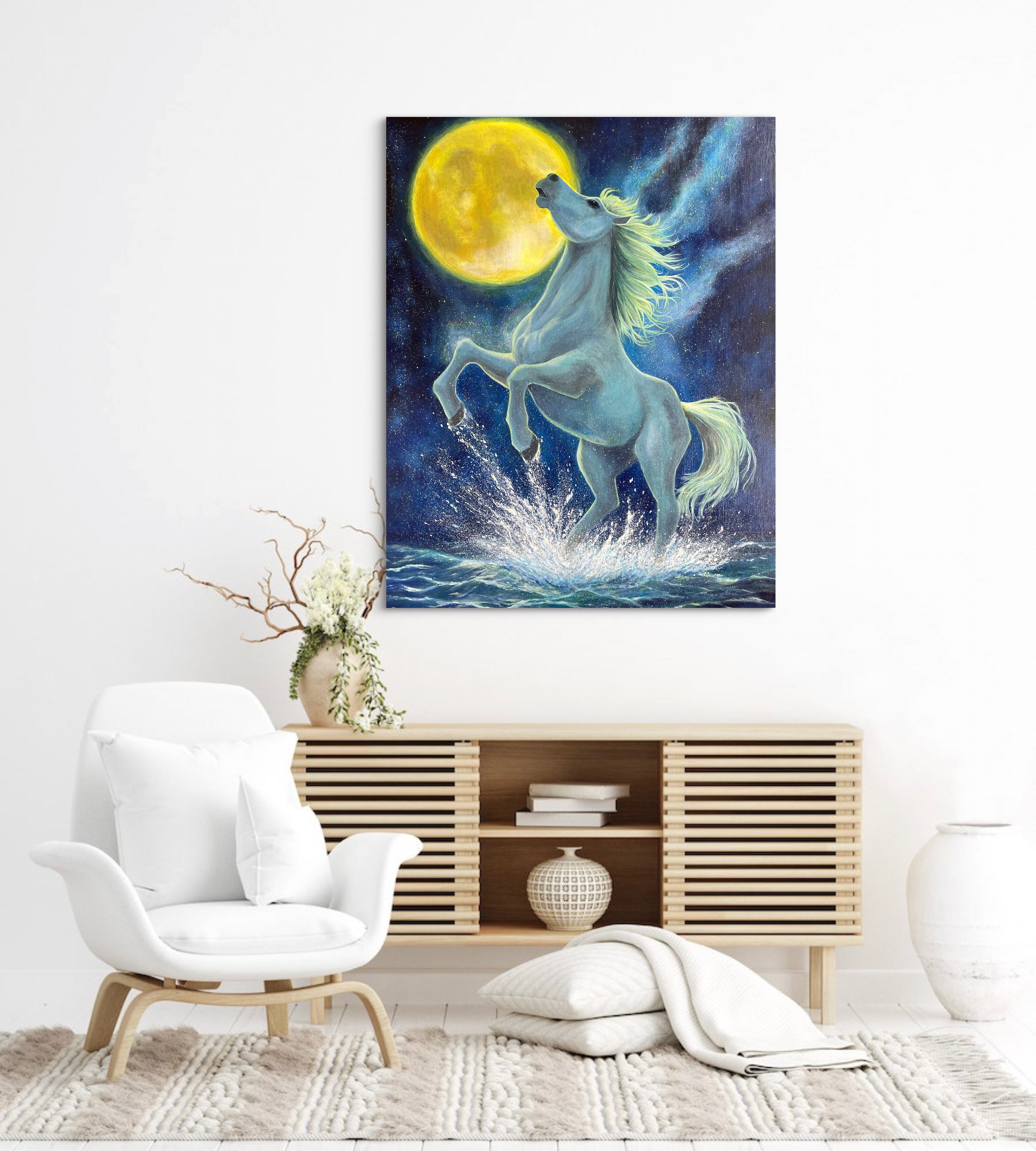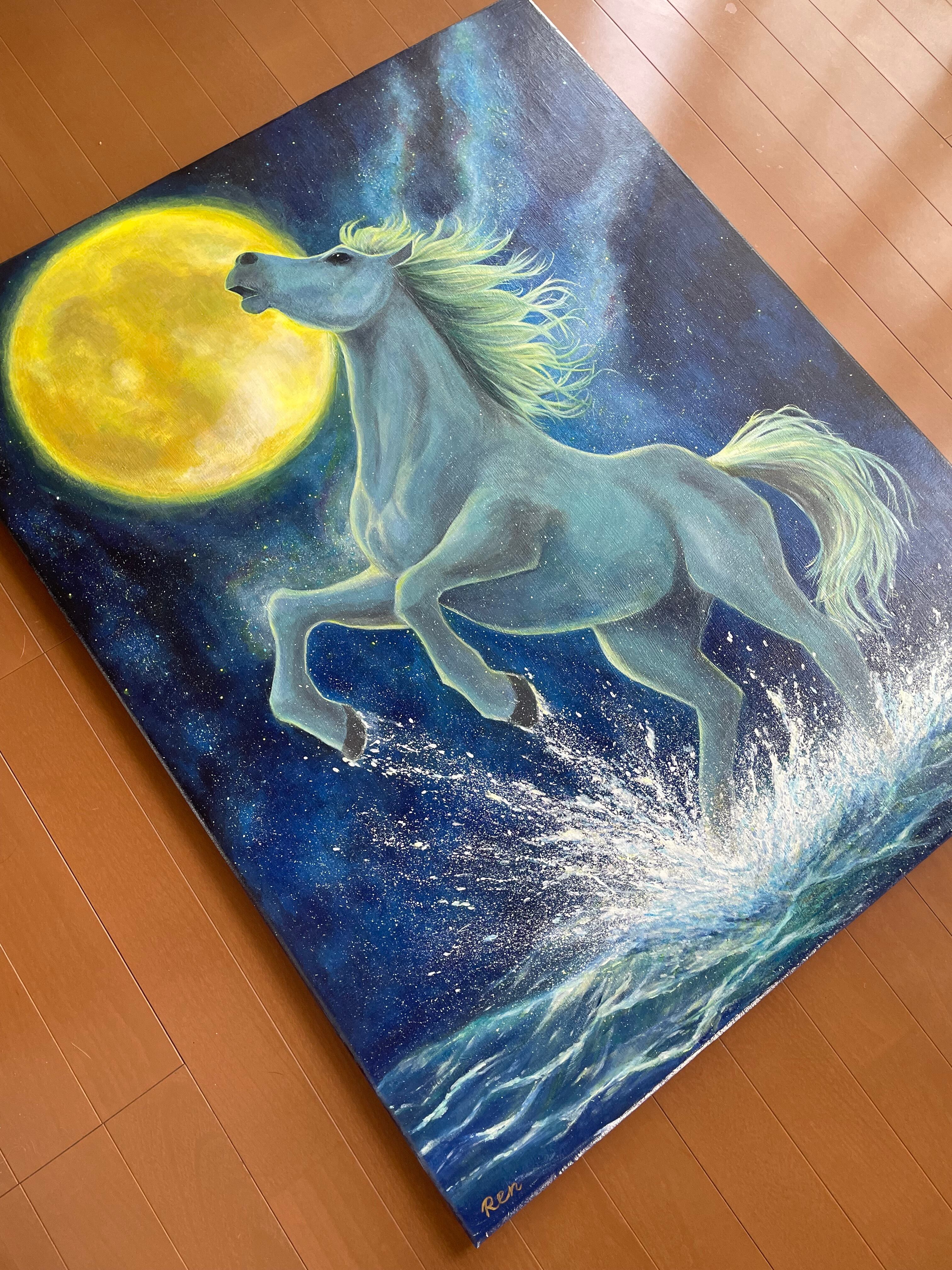 【満月と白馬】アクリル画の原画一点物